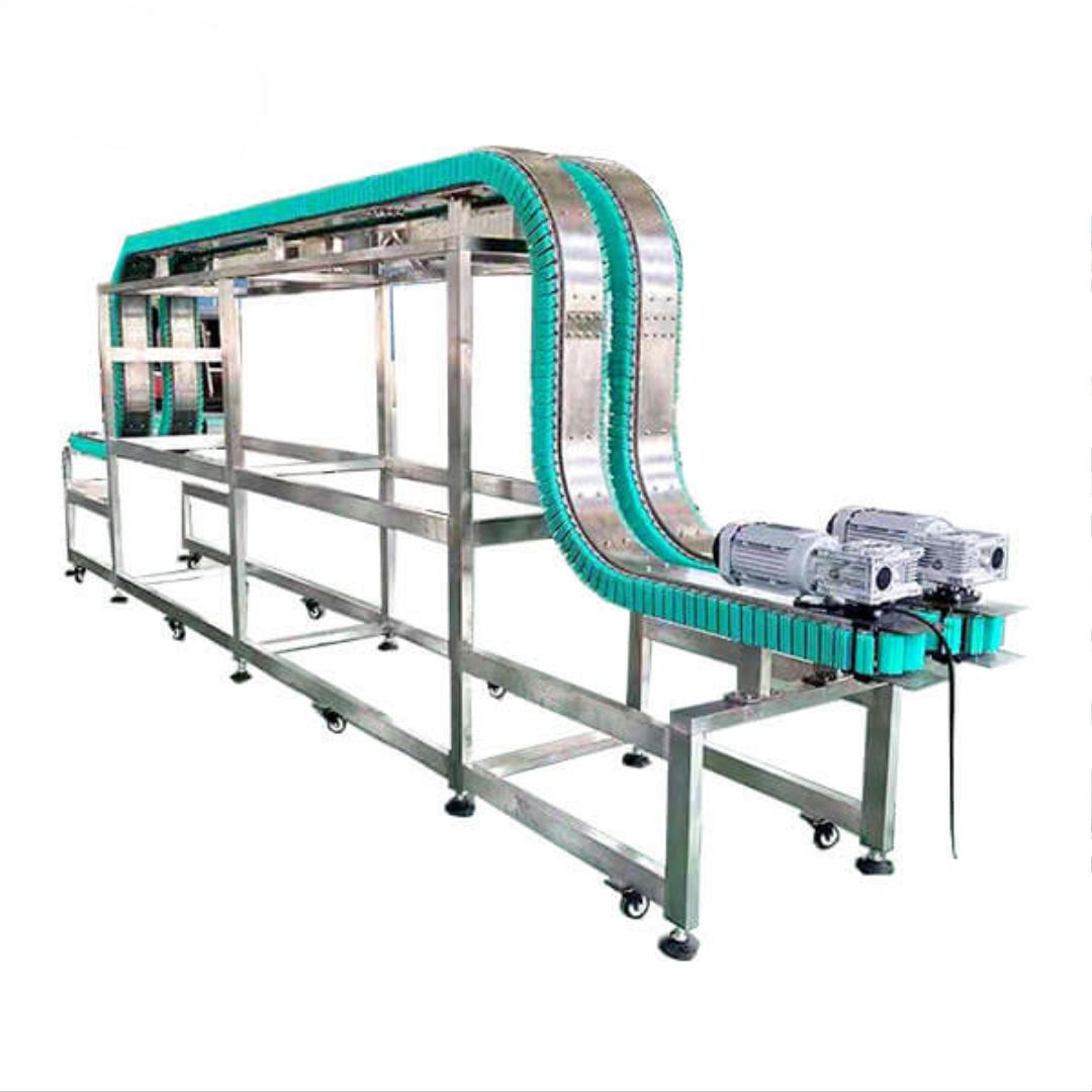 Le système de piste à chaîne fonctionne sur des roulements de précision pour une friction et un bruit réduits. Les convoyeurs spirals sont capables de travailler dans de nombreux types d'industries : industrie alimentaire, industrie des boissons, logistique et entreposage, industrie du tabac, industrie électronique, industrie pharmaceutique, industrie de la presse, alimentation pour animaux et produits de soins personnels, et autres.