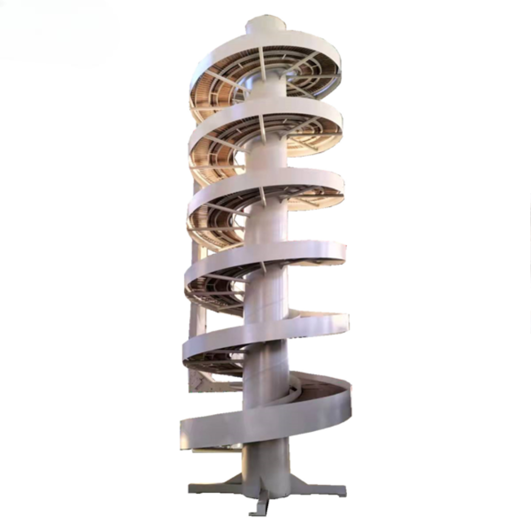 Le convoyeur spiral vertical optimise l'utilisation de l'espace au sol tout en permettant un transport vertical efficace entre différents niveaux.