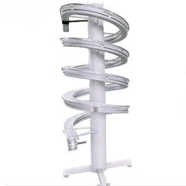 Le convoyeur spiral vertical se compose d'une bande transporteuse à chaîne mobile qui tourne autour d'une colonne centrale. Il peut être utilisé pour déplacer une large gamme de produits entre différents niveaux d'étage ou au-dessus des passages.