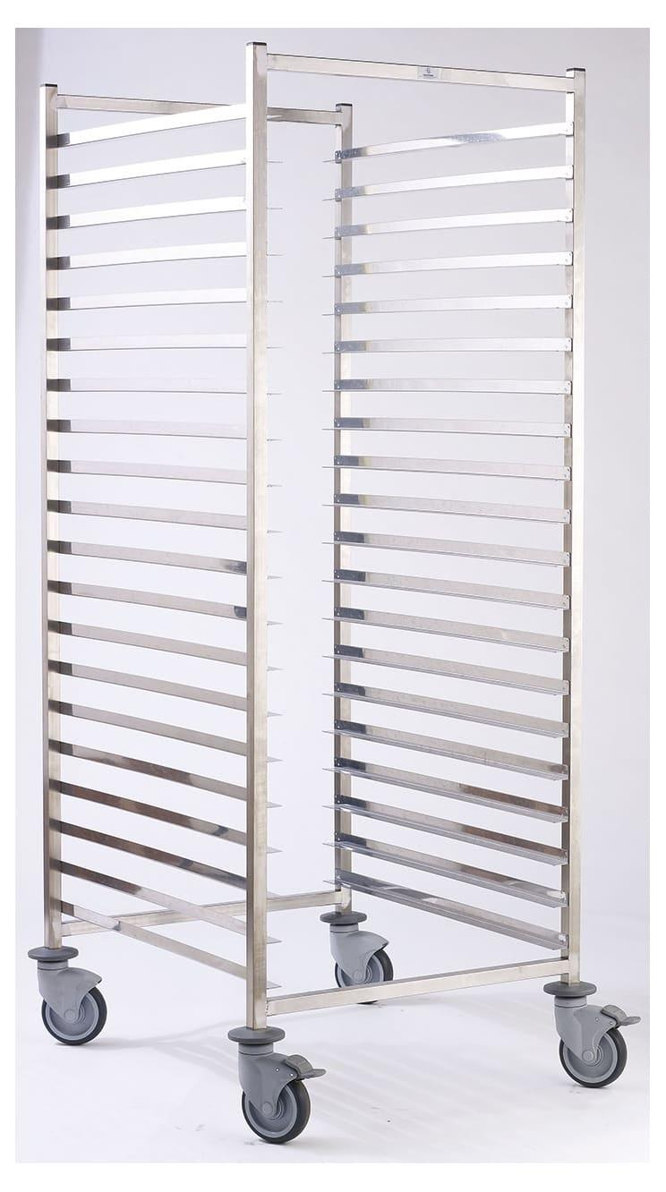 Conçu pour une intégration fluide dans la chaîne de production, le chariot permet le transfert direct de la zone de fermentation au four sans manipulation intermédiaire. Les roues industrielles avec système de freinage et guidage facilitent les déplacements en toute sécurité, même avec charge maximale.